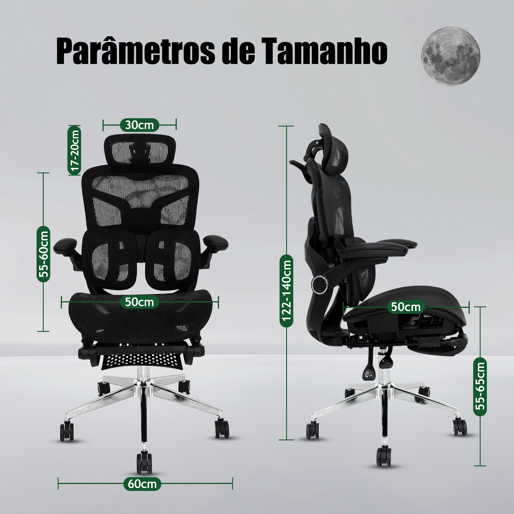 Cadeira Ergonômica EMPABE - Encosto Ajustável, Rede Mesh, Rodízios Forte ≤150kg,Preto